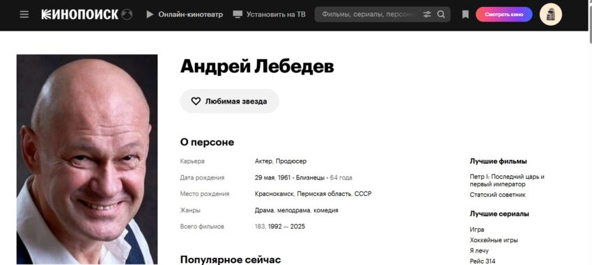 • Фильмография Андрея Лебедева включает свыше 20 проектов в жанре криминал;
